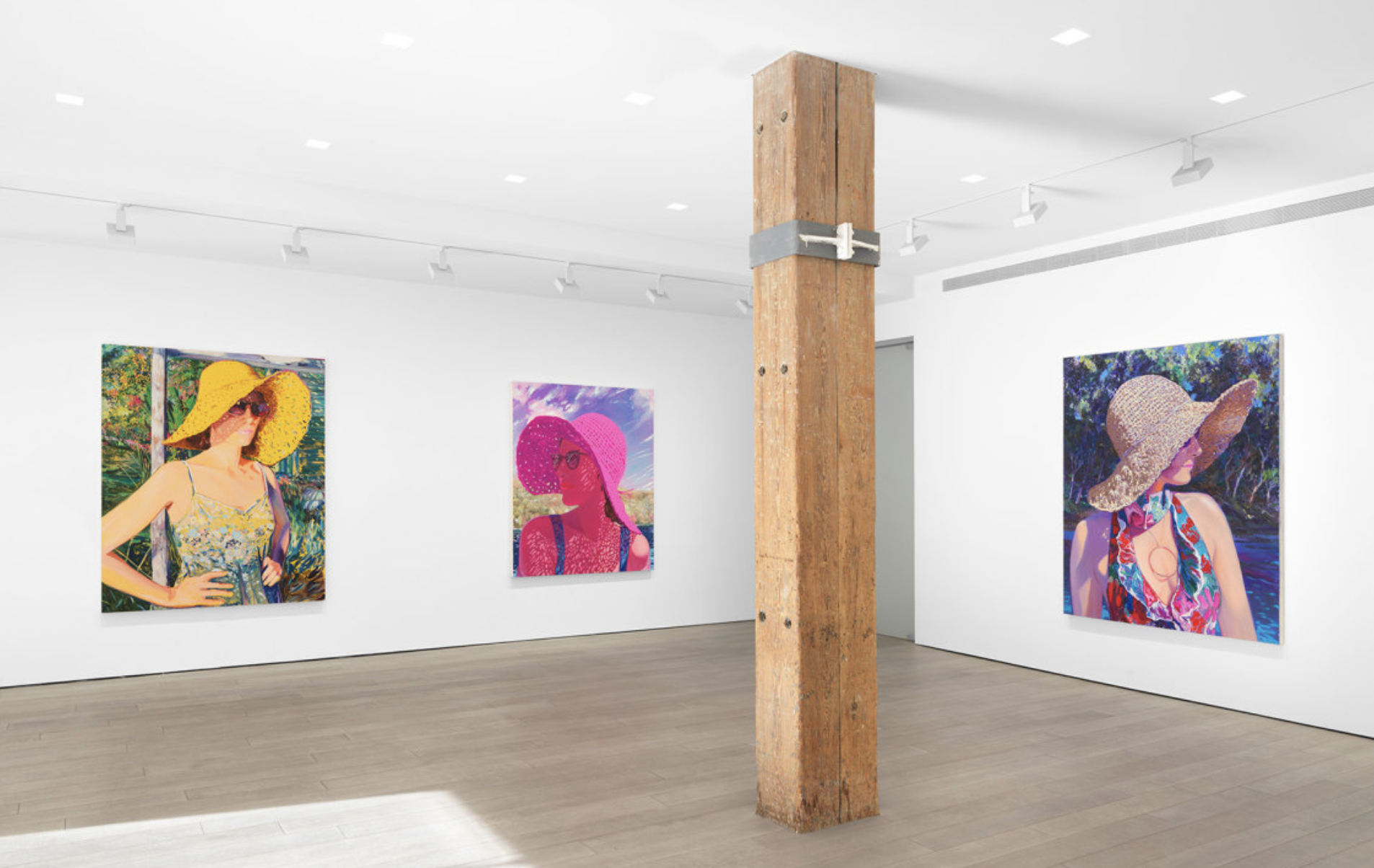 With a sunny series of portraits, Sebastian Blanck presents a love letter to his wife and muse, artist Isca Greenfield-Sanders, capturing her at different angles. Though these intimate works are based on photographs of his wife, Blanck’s loving portraits are not consumed with photorealism; instead they are joyous explorations of light and vivid colors. Gazing at these portraits you are suddenly swept up into their relationship: as Blanck paints light falling onto this wife, the intimacy of her face distinctly captured by a loving partner.